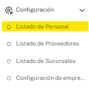 Dentro de nuestro escritorio de Datapax iremos a la seccion de Configuracion > Listado de Personal.