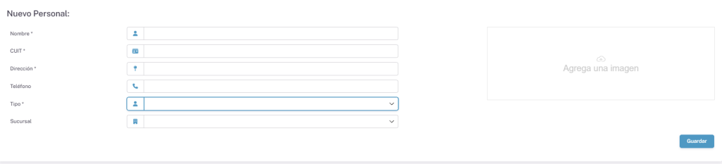 Nos va a pedir rellenar los datos del personal que queremos crear. Tras haberlos llenado, le daremos en Guardar.