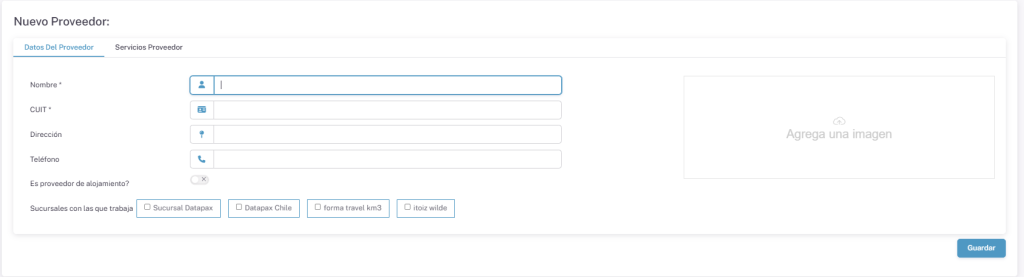 Tenemos dos pestañas nuevas, la primera sera agregar al proveedor como tal, tenemos que llenar los siguientes datos: Nombre – CUIT – Direccion – Telefono – Surcursal.