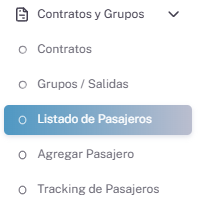 El proceso para cambiar de pasajeros de contrato empieza yendo a la ventana de Listado De Pasajeros.