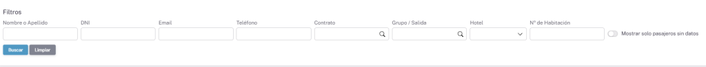 Buscamos el pasajero que queremos transferir a otro contrato, para esto podemos usar el sistema de búsqueda por filtración de datos que tiene el sistema.