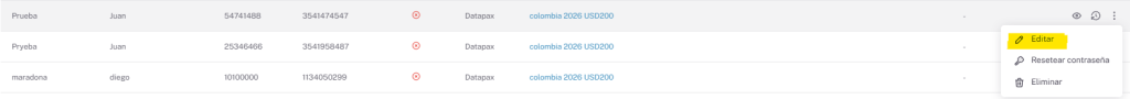 Cuando lo encontramos le daremos en Editar Pasajero.