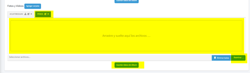 Una vez que tenés los álbumes y carpetas creadas, ya podés comenzar a subir el contenido multimedia.